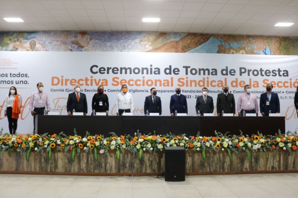 En representaci贸n del Mandatario potosino Gallardo Cardona, el secretario de Educaci贸n Ernesto Barajas 脕brego, acudi贸 a la toma de protesta del nuevo dirigente de la Secci贸n 26 del Sindicato Nacional de Trabajadores de la Educaci贸n (SNTE).