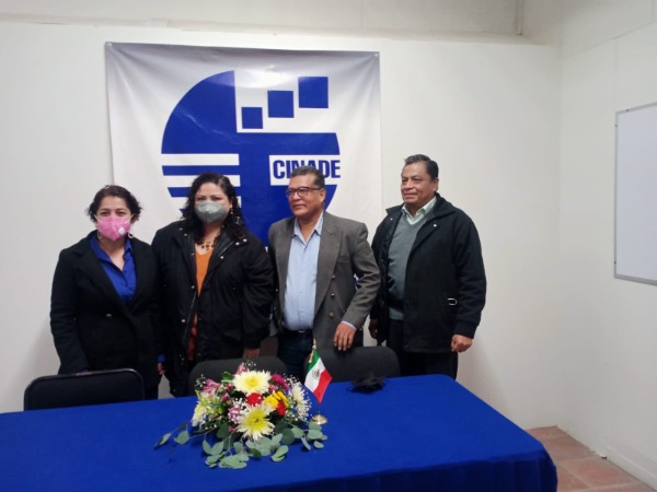 La rueda de prensa estuvo encabezada por el maestro Juan Besanilla Gaspar del ILADEC (Instituto Latinoamericano ), Samuel Muñoz Ortega maestro del CINADE, así como de la maestra María del Carmen Monterrubio Tavera, coordinadora de Maestría y Doctorado de CINADE Ciudad Valles.