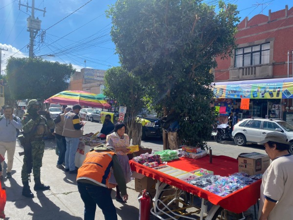 Elementos de la Guardia Civil Estatal en coordinación con Protección Civil, Comercio Municipal, Policía Municipal y SEDENA, conforman cinco células operativas con el fin de desplegarse sobre la zona centro, poniente, sur, norte y Pozos/La Pila, a fin de darle cobertura a las tareas de inspección de los puestos de venta de pirotecnia con la finalidad de detectar que cuenten con los permisos, requerimientos de seguridad y venta de fuegos artificiales permitidos.