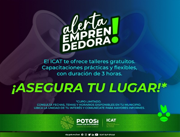 - El Instituto de Capacitación para el Trabajo de San Luis Potosí (Icat), brindará cursos y talleres gratuitos en las cuatro regiones del Estado, ante la llegada de nuevas empresas que requerirán mano de obra.