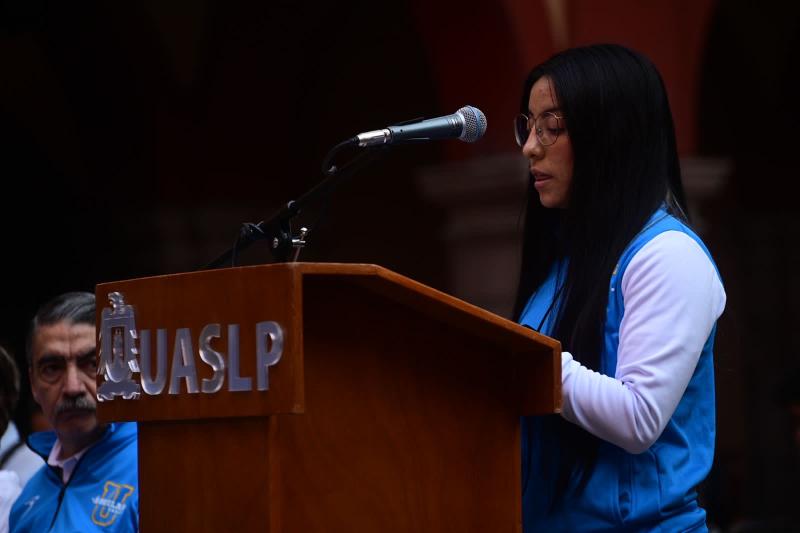 El rector de la UASLP, Alejandro Zermeño Guerra, realizó el abanderamiento de la delegación de las Águilas con los estudiantes Silvia Elena Guerrero García de la disciplina de soft bol y Felipe de Jesús Arenas Marentes, de básquetbol; la boxeadora, Laura Cecilia Escamilla Charqueño se encargó del juramento deportivo; mientras que el entrenador de Tae Kwon Do, Jerónimo López Chiw hizo lo propio.