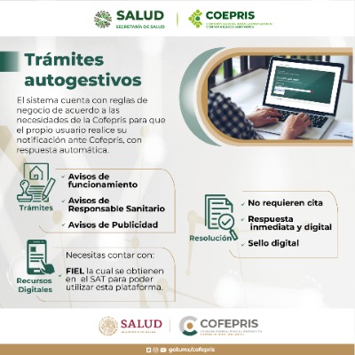 Se pueden realizar en línea de manera rápida y sencilla los trámites de: Alta, Modificación y Baja de los Avisos de Funcionamiento y Responsable Sanitarios en las áreas de: Productos y servicios (restaurantes, cocinas económicas, bares, centros nocturnos, hoteles, purificadoras de agua, servicios de comedores industriales, expendedores de alimentos ambulantes, establecimientos de Tatuajes, así como salones o clínicas de belleza que ofrecen micro pigmentación u algún otro procedimiento).