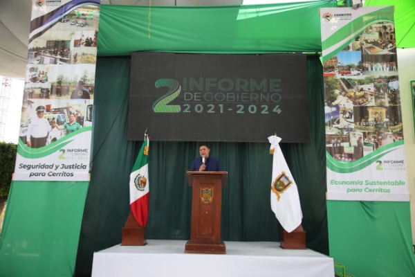 - Por primera ocasión un Gobernador acude al informe de este municipio; aquí el Mandatario estatal reafirmó todo su apoyo para la transformación de Cerritos y del Estado.