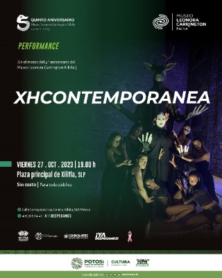 Finalmente el viernes 27 de octubre, a las 19:00 h, la compañía dancística Xhcontemporánea, bajo la dirección de Lidia Méndez, ofrecerá una presentación performática conmemorativa en la Plaza principal del municipio de Xilitla, para luego dar paso a la presentación de la Banda Sinfónica de Ciudad Valles, en punto de las 19:30 h.