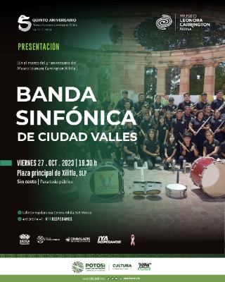 San Luis Potosí ya despegó en cultura y su descentralización, por lo que en este marco la Secretaría de Cultura de Gobierno del Estado celebra el V aniversario del Museo Leonora Carrington de Xilitla con diversas actividades artísticas conmemorativas a partir de este 19 de octubre, comenzando por la inauguración de la exposición "Oneira" de celeste Lomelí, que tendrá lugar en el Salón de los espejos del Museo, en punto de las 17:00 h.