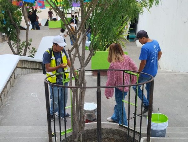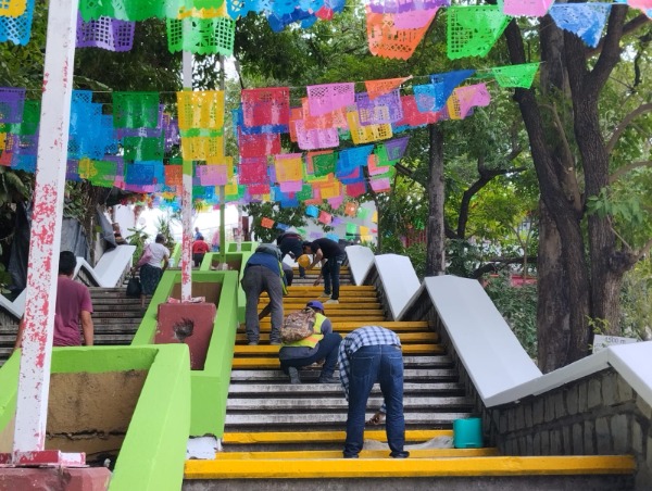 Esta mañana en la plaza principal de Ciudad Valles, personal del Ayuntamiento, continúa con la instalación del decorado con motivo de las festividades de Xantolo 2023.