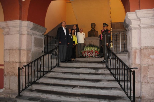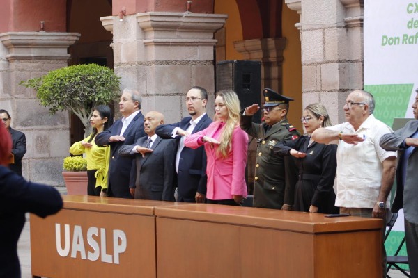 Al final del evento, las y los invitados rindieron homenaje a Rafael Nieto Compeán con una guardia de honor en su busto ubicado en la escalinata principal del Edificio Central de la UASLP.