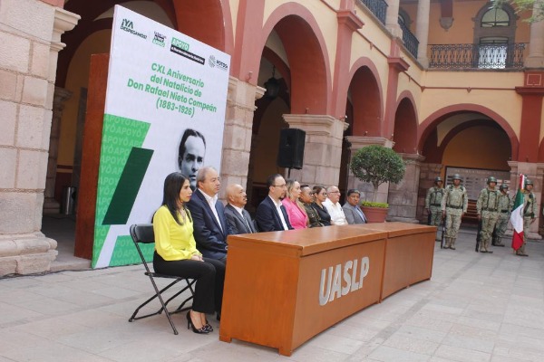 El Gobierno del Estado, en coordinación con la Universidad Autónoma de San Luis Potosí (UASLP), rindió homenaje al exgobernador Rafael Nieto Compeán en el Edificio Central de la universidad, en el CXL aniversario de su nacimiento, con una emotiva ceremonia en la que se recordó a quien otorgó el voto a las mujeres potosinas y formalizó la autonomía universitaria.