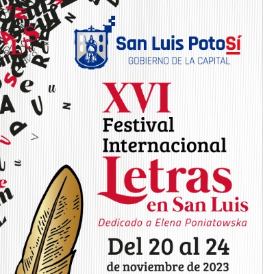 San Luis Potosí Capital será la Capital de la Cultura de México, al iniciar el XVI Festival Internacional Letras en San Luis 2023 del 20 al 24 de noviembre, con la participación de escritores potosinos, mexicanos, españoles, franceses, japoneses, de Austria y Argentina.