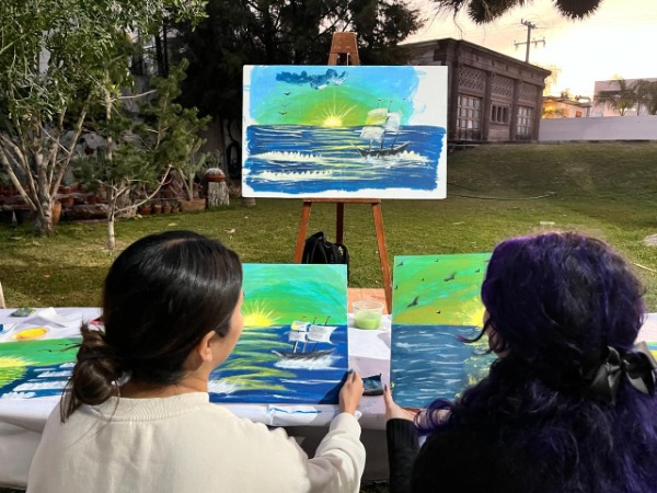 Art&Wine es una clase guiada, en donde se enseñaran las técnicas básicas para aprender diferentes trazos con pintura acrílica, la clase será orientada por el artista plástico Karim Olvera y estarán trabajando un atardecer con combinaciones de colores y sombras.