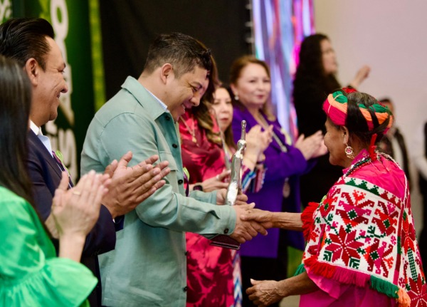 Acompañado por la presidenta honoraria del Sistema Estatal para el Desarrollo Integral de la Familia (DIF), Ruth González Silva y a nombre de las y los potosinos, el Mandatario Estatal entregó una estatuilla y una constancia a las galardonadas de la región Centro, Lorena Mendoza Rosas; del Altiplano, María Yolanda López de la Rosa; de la región Media, Martha Imelda Maldonado Cervantes y de la Huasteca, María Alejandra Reyes Candelaria.