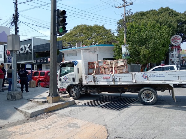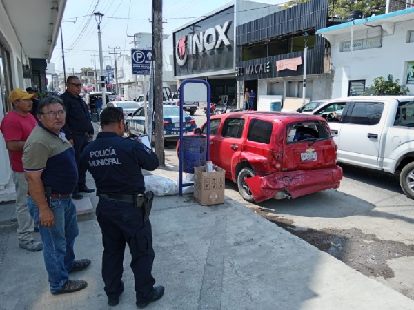 En el Bulevar México Laredo y la Avenida Juárez, un camión presuntamente perdió el control debido a una falla en los frenos, provocando una colisión con la parte trasera de un vehículo Chevrolet HHR de color rojo.
