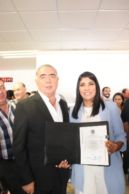 Acto seguido se entregó la constancia a Verónica Rodríguez Hernández de la coalición "Fuerza y Corazón por México" conformada por los partidos PAN, PRI y PRD así como a Bertha Estela Arriaga Márquez como suplente.