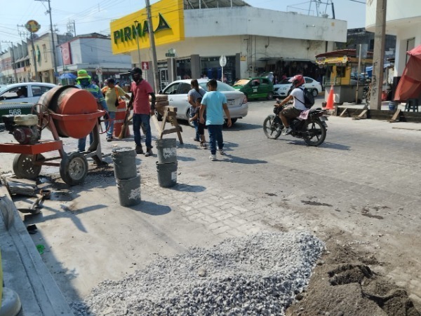 Este martes continúan las labores de rehabilitación y ampliación de la calle Hidalgo en el centro de Ciudad Valles.