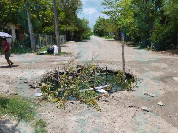 En la colonia Vista Hermosa, específicamente en la intersección de las calles Francisco I Madero y Bocanegra, un enorme socavón ha surgido debido al colapso total del drenaje.