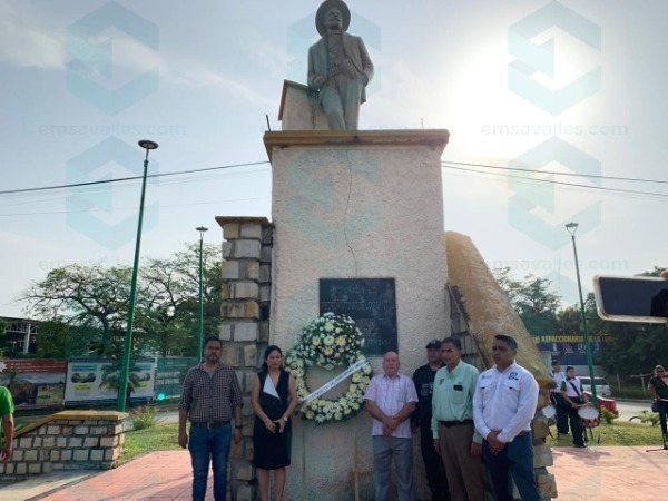 Personal del Ayuntamiento de Ciudad Valles se reunió en la glorieta de la calle Pedro Antonio Santos Rivera para rendir tributo al ilustre personaje en su 111 aniversario luctuoso.