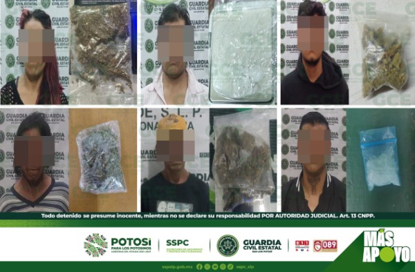 Labores preventivas efectuadas por la Guardia Civil Estatal (GCE), detuvieron a 17 personas, en distintas ubicaciones, por la probable posesión de drogas, logrando inhibir la venta y/o consumo de sustancias nocivas en la entidad potosina.