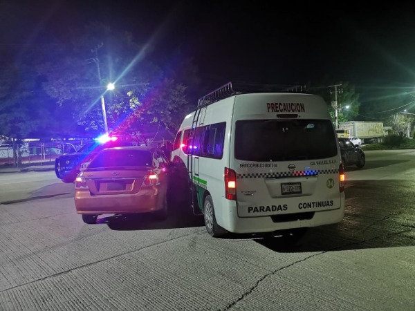 El conductor de una camioneta Nissan blanca, tipo panel, usada para el transporte colectivo, ruta Valles-Ojo de Agua, circulaba por calle Brasil y al tratar de cruzar la otra calle, le cortó la circulación al conductor de un vehículo Chevrolet Aveo, provocando el choque.