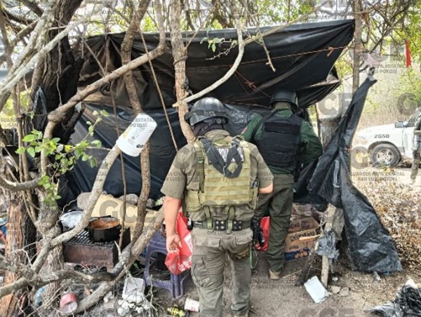 En Charcas, un grupo de cuatro jo虂venes menores reclutados por la delincuencia organizada se resguardaban en un campamento, se logro虂 la detencio虂n de estas personas originarias de Durango y uno de Chiapas quedando a disposicio虂n de las autoridades competentes.