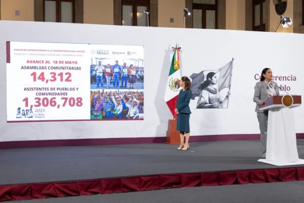 Destacó que además se han realizado 14 mil 312 asambleas en comunidades originarias y afromexicanas para la implementación de los recursos del Fondo de Aportaciones a la Infraestructura Social; han participado 306 mil 708 personas. Sobre el censo de viviendas del Instituto del Fondo Nacional de la Vivienda para los Trabajadores (Infonavit) y del Fondo de Vivienda del Instituto de Seguridad y Servicios Sociales (FOVISSSTE) detalló que, al 18 de mayo, servidores de la nación han visitado 101 mil 117 viviendas de una meta de 932 mil 639. Respecto a México te Abraza se han entregado 22 mil 756 tarjetas Bienestar Paisano con un apoyo de 2 mil pesos.