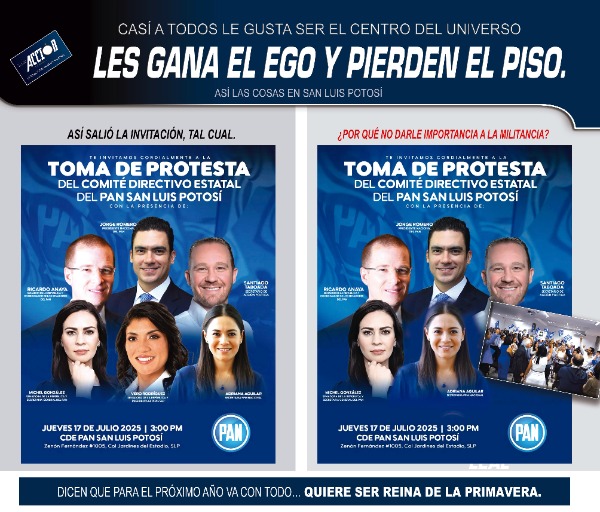 La crítica también alcanzó al alcalde capitalino Enrique Galindo Ceballos, quien, ha sido uno de los impulsores tras bambalinas de esta toma de protesta. El episodio ha revelado una fractura interna en el PAN potosino, donde voces tradicionales y militantes de años exigen respeto, inclusión y menos culto a la personalidad. La dirigencia nacional, encabezada por Jorge Romero, ha sido señalada también por permitir que este tipo de imposiciones se normalicen.