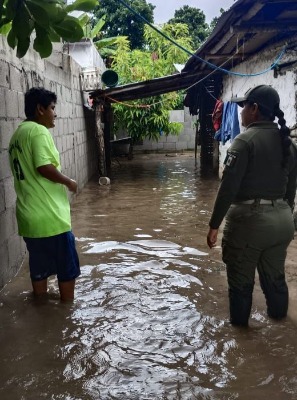 Una de las principales zonas afectadas fue el Barrio La Noria, en donde efectivos de la GCE en coordinación con Protección Civil, apoyan a la población y desalojan la zona, tras el incremento del río Moctezuma.