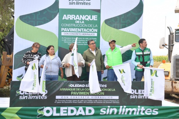 Juan Manuel Navarro Muñiz, Alcalde de Soledad de Graciano Sánchez, encabezó el arranque de la obra de pavimentación con concreto hidráulico y sistema de alumbrado público de la avenida Ponciano Arriaga, en el tramo que va de calle Los Padilla a calle Víctor Cervera Pacheco, con una inversión superior a los 23.5 millones de pesos, beneficiando directamente a casi 6 mil habitantes; este proyecto forma parte del compromiso permanente del Gobierno Municipal por mejorar la infraestructura urbana y elevar la calidad de vida de las familias.