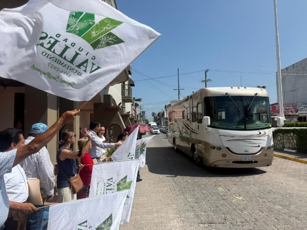 Esta tarde, turistas que integran la caravana de casas rodantes del grupo "Amigos Viajando por México" llegaron al mediodía a Ciudad Valles, como parte de su recorrido por la región Huasteca. Un integrante del grupo comentó: "Somos aproximadamente 45 caravanas, algunos compañeros llevan 6 años en el camino. Esto nos hace recordar hace 40 años cuando llegaban allá por El Bañito 5 caravanas de canadienses".
