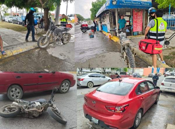 El hecho se registró cuando la conductora de un vehículo Kia rojo, que circulaba con dirección de norte a sur sobre el bulevar México-Laredo, intentó girar hacia la calle Pedro J. Méndez sin percatarse de un motociclista que venía en circulación.