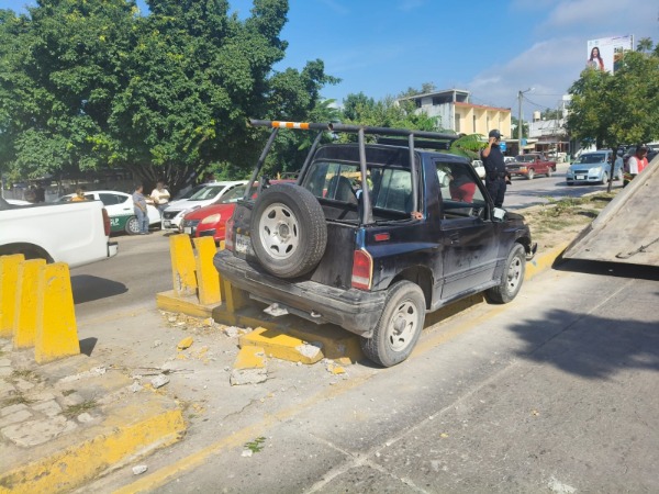 Tras el impacto, el conductor de la camioneta perdió el control del volante y terminó subiéndose al camellón central, dañando el muro de concreto que protege a los peatones.