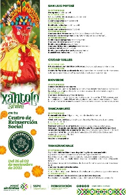 Con motivo de las festividades de Xantolo, la Dirección General de Prevención y Reinserción Social llevará a cabo una amplia jornada de actividades culturales, artísticas y tradicionales en los distintos centros de reinserción social del estado, promoviendo con ello la conservación de las tradiciones potosinas, fomentando la integración, la creatividad y los valores comunitarios entre las personas privadas de la libertad.
