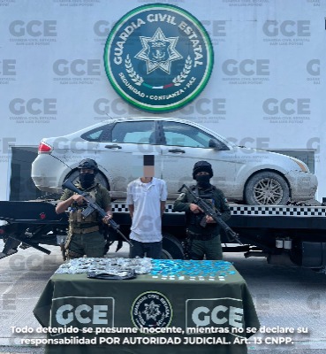 Como parte de los distintos operativos de seguridad y prevención que se efectúan en la Huasteca potosina, elementos de la Guardia Civil Estatal de la región Huasteca detuvieron a Jonathan "N" de 23 años cuando se desplazaba a bordo de un automóvil Ford Focus modelo 2009.