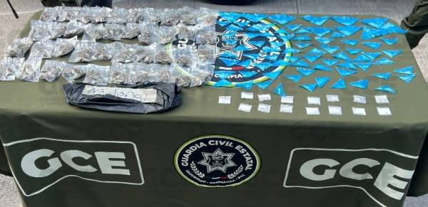 El presunto, que manejaba de manera peligrosa sobre la calle Adolfo López Mateos en la colonia Vista Hermosa, llevaba consigo 40 bolsas con una hierba seca en color verde con las características físicas similares a la marihuana; 75 bolsas con polvo blanco granulado con las características físicas similares a la droga conocida como "cristal" y 15 bolsas con piedra color blanco con las características físicas similares a la droga conocida como "crack".