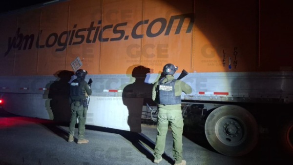 En el lugar quedaron asegurados también algunos artefactos denominados inhibidores de señal GPS, todo fue puesto a disposición ante la autoridad correspondiente al igual que un tractocamión Internacional, Prostar, modelo 2014, en color blanco acoplado a un remolque en color naranja, además de un tractocamión, modelo 2022 International, con placas de Michoacán en color blanco, con reporte de robo