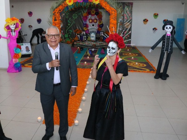 Posteriormente, se llevó a cabo la develación del altar que ofrece todos los elementos que las personas disfrutaron en vida y los símbolos que les ayudan en su tránsito espiritual, en esta ocasión se recordó con imágenes al personal que formó parte de esta institución y que hoy ya no están con nosotros.