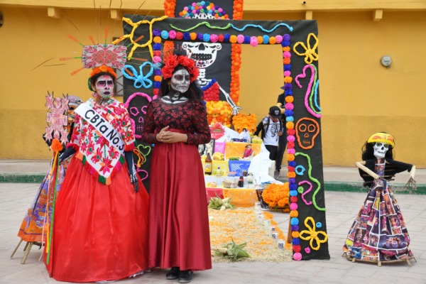 Con el impulso y respaldo del Alcalde Juan Manuel Navarro Muñiz, este miércoles, se realizó un desfile de comparsas con estudiantes caracterizados como catrinas y calaveritas, además de concursos de altares y disfraces, donde la Administración municipal otorgó incentivos económicos a los ganadores, así como apoyo logístico para beneficiar directamente a las y los participantes y fortaleciendo la participación comunitaria.