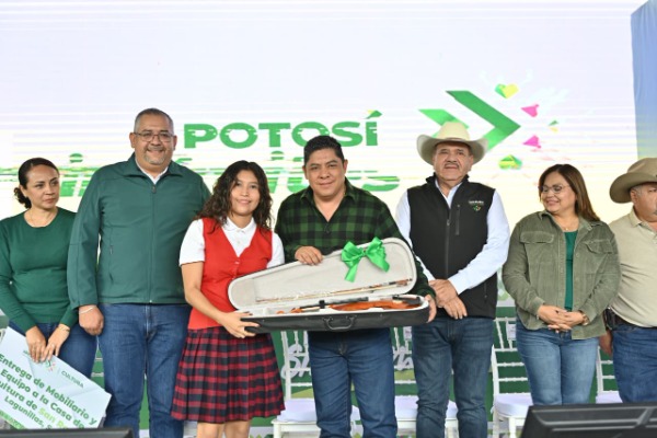 Además, Ricardo Gallardo entregó mobiliario, equipo tecnológico e instrumentos musicales a la Casa de Cultura de la localidad, en respuesta a una solicitud realizada por la comunidad educativa de la preparatoria que se atendió de inmediato, logrando concretar una alianza institucional con el ayuntamiento para la habilitación y operación del recinto cultural.