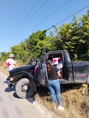 El accidente ocurrió la mañana de este domingo en el kilómetro 11 de la carretera estatal Valles–Naranjo, a la altura del ejido Rancho Nuevo, donde una camioneta Ford Ranger negra perdió el control tras pasar sobre un bache.