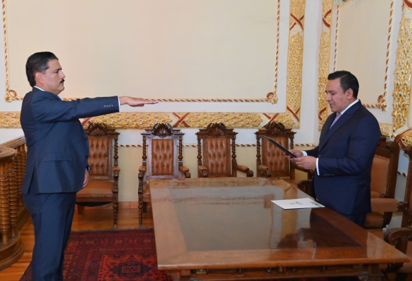Este lunes, el secretario general de Gobierno, J. Guadalupe Torres Sテ。nchez, tomテウ protesta a Miguel テ]gel Garcテュa Amaro como subsecretario de Gobernaciテウn, en sustituciテウn de Jorge Vega Arroyo, quien estuvo al frente del テ。rea durante cuatro aテアos; el cambio, informテウ Torres Sテ。nchez, darテ。 continuidad al trabajo institucional y renovarテ。 el ritmo en la subsecretarテュa.
