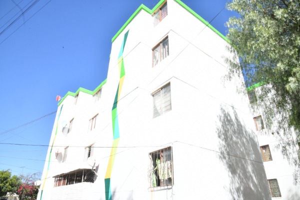 - En la colonia Hogares Ferrocarrileros segunda sección, el programa "Empleo Temporal" registra un avance del 95% en la transformación de imagen de edificios departamentales.