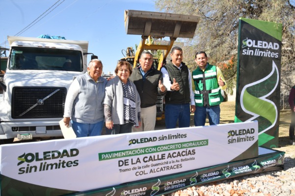 El Alcalde de Soledad de Graciano Sánchez, Juan Manuel Navarro Muñiz, dio el banderazo de arranque al proyecto de transformación urbana de la colonia Alcatraces, con la pavimentación de varias calles, entre ellas, Acacias, que actualmente es de tierra, piedras y su estado es irregular para el tránsito de personas y automóviles; el arranque de rehabilitación comprende de la calle Guamúchil a la avenida Bellavista, otras vialidades de privadas y la construcción de un área común para beneficio de toda la comunidad.