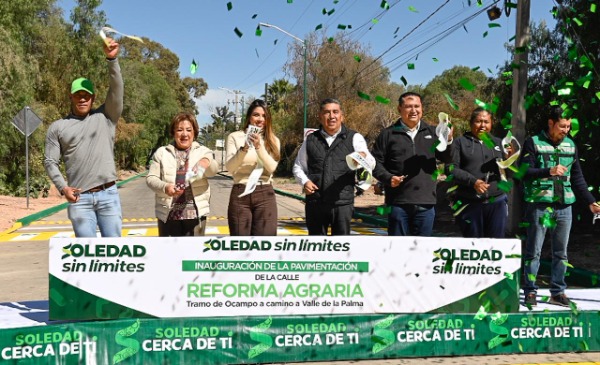 Juan Manuel Navarro Muñiz, Alcalde de Soledad de Graciano Sánchez, encabezó este día la inauguración de una de las obras más importantes en materia de movilidad y desarrollo urbano del municipio, la pavimentación de la avenida Reforma Agraria en Fracción Rivera, acompañado por la senadora Ruth González Silva, como invitada especial; el edil destacó que esta acción representa la transformación tangible que impulsa el Gobierno Municipal con el respaldo del Gobernador del Estado, Ricardo Gallardo Cardona.