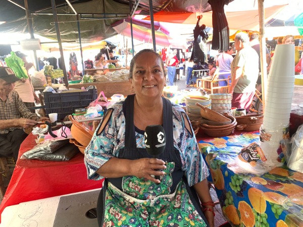 Flores Juárez explicó que los meses de calor suelen ser la mejor temporada para su negocio de aguas frescas, pero actualmente ni siquiera las quincenas generan movimiento, reflejando una economía local debilitada.