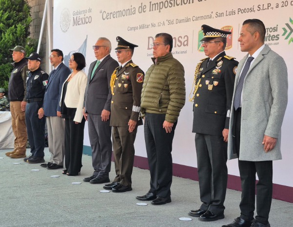 Al acudir en representación del Gobernador del Estado, Ricardo Gallardo Cardona a la ceremonia de Imposición de Ascensos y Entrega de Condecoraciones a personal militar en el 40 Batallón de Infantería, el Secretario de Seguridad y Protección Ciudadana del Estado, Jesús Juárez Hernández, destacó el espíritu de pertenencia y profesionalización de las fuerzas armadas, que se replica en la formación del personal de la Guardia Civil Estatal eficientando la coordinación y cooperación entre Estado y la Federación.