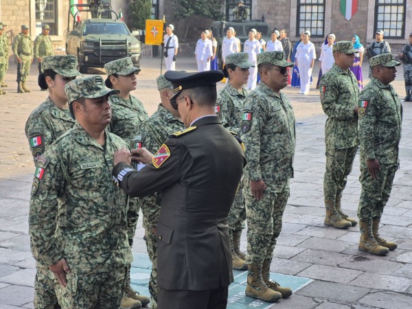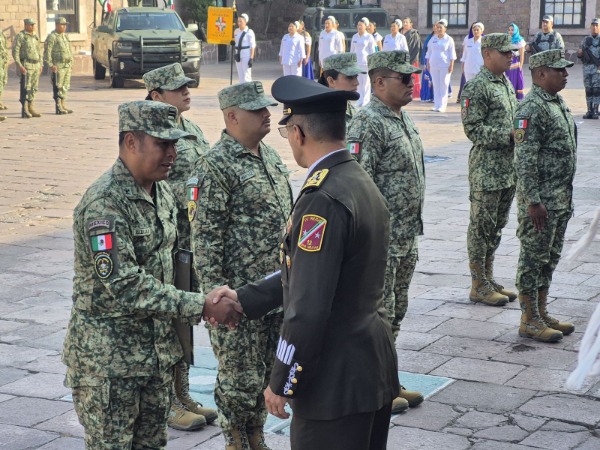En la ceremonia celebrada en el marco de la conmemoración del aniversario de la Revolución Mexicana, el general de Brigada E.M. Roberto Bernal Benítez, comandante de la 12a Zona Militar, destacó que un ascenso no es un simple cambio, sino el resultado de una vida de sacrificio, de horas de estudio y preparación inquebrantable con la responsabilidad y el compromiso de servir a la patria con honor, deber y lealtad, principios que se comparten y distinguen en la Guardia Civil Estatal.
