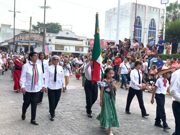 El desfile inició con la llegada del presidente municipal David Armando Medina Salazar, acompañado de su esposa, Ena Avendaño Uscanga, así como autoridades militares, estatales y municipales. También se integraron los regidores del Cabildo, funcionarios de primer nivel y trabajadores del Ayuntamiento, quienes formaron parte del contingente oficial que abrió el recorrido.