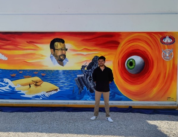 "Yo soy egresado de ahí, y el profe incluso me dio clase en un semestre. Fue muy especial regresar para hacer lo que más me gusta", expresó. Comentó que tardó aproximadamente dos semanas en completarlo, trabajando desde la mañana hasta caer la tarde.