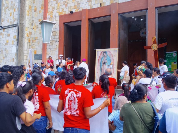 Desde las primeras horas de este sábado, familias provenientes de Tancanhuitz, Xilitla y otros municipios de la Huasteca arribaron a Ciudad Valles para participar en la Presentación de las Antorchas Guadalupanas de toda la Diócesis, evento celebrado en el Sagrario Catedral.