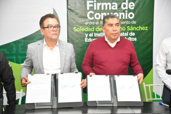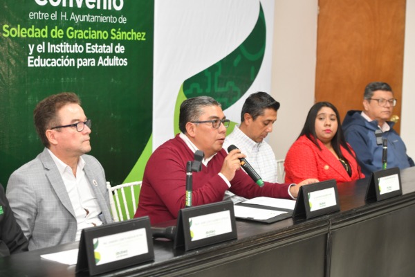 Juan Manuel Navarro Muñiz, Alcalde de Soledad de Graciano Sánchez, firmó este miércoles un convenio de colaboración con el Instituto Estatal de Educación para Adultos (IEEA), para fortalecer la atención educativa de jóvenes y personas adultas, en un contexto donde el municipio presenta ya uno de los niveles más bajos de rezago en el Estado potosino, consolidando así el avance sostenido de Soledad hacia la erradicación del analfabetismo y colocándolo en la antesala de convertirse en el primer municipio del país en levantar bandera blanca, como muestra del compromiso permanente de un gobierno cercano que escucha y atiende a las familias.