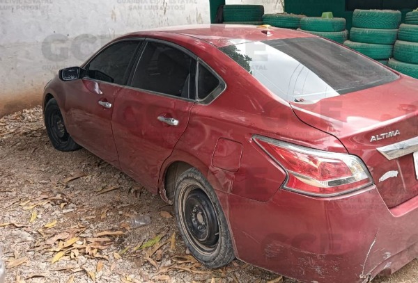Las fuerzas del orden repelieron una agresión por parte de ocupantes de un automóvil Nissan Altima y al iniciarse la persecución de los presuntos, éstos huyeron en distintas direccione, asegurándose el vehículo en el bulevar Miguel Hidalgo, en cuyo interior había "poncha llantas" y bolsas azules que contenían "cristal".